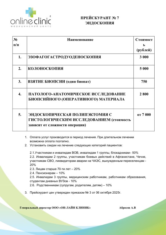 Прейскурант №7 "Эндоскопия":