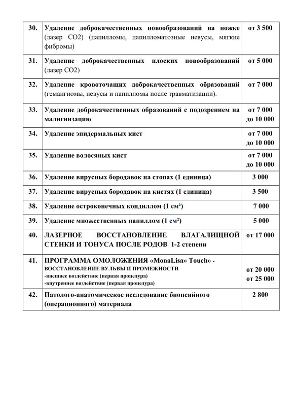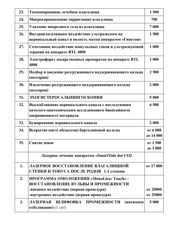 Прейскурант №2 "Гинекология":