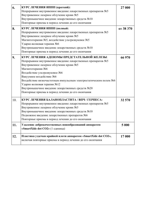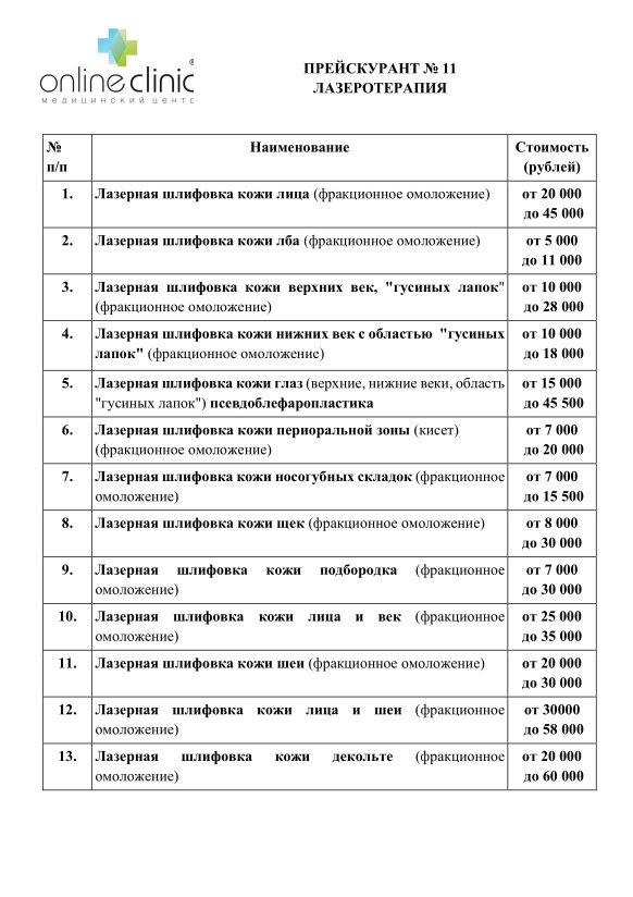 Прейскурант №11 "Лазеротерапия":