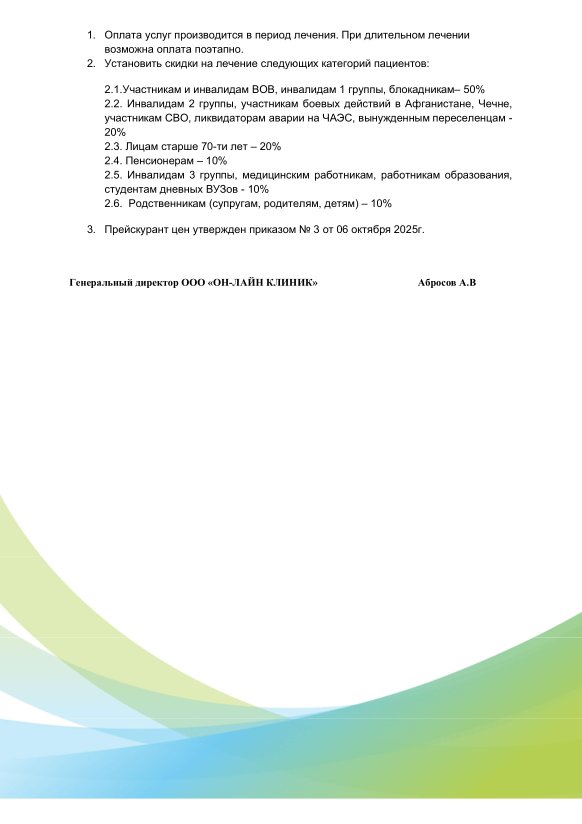 **В Клинике все услуги - платные, и предоставляются согласно прейскуранту: